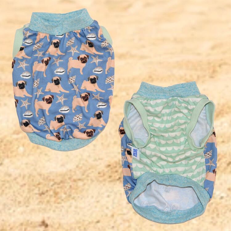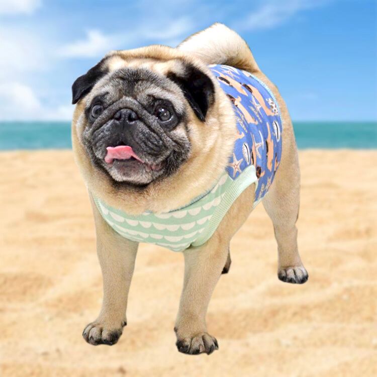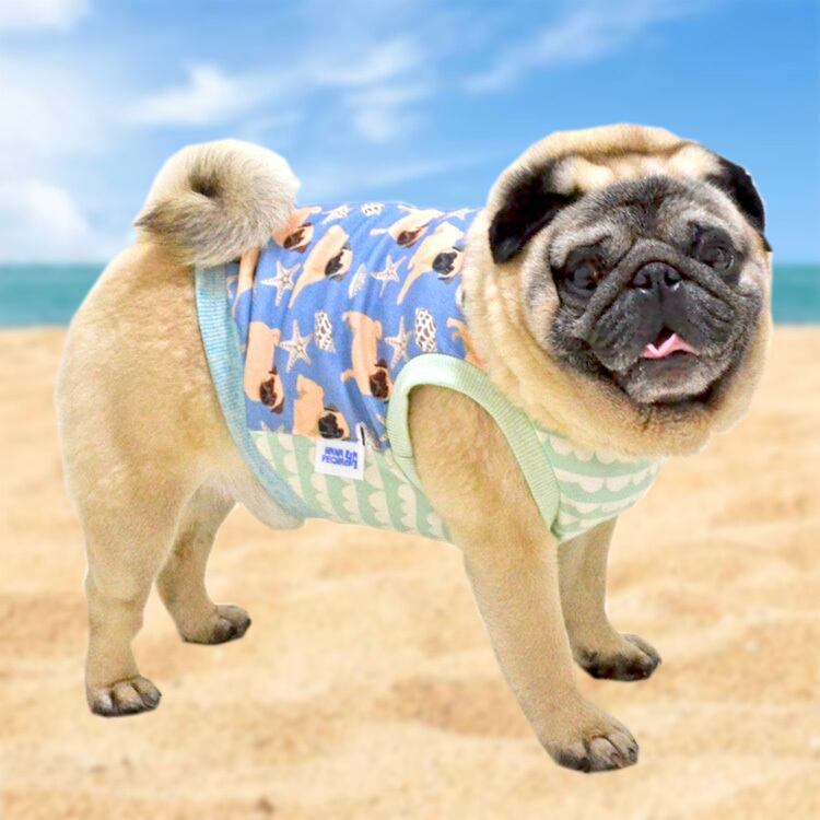 お腹部分の生地は波をイメージしたものになっていて、ビーチでくつろぐパグちゃんが出来上がり!