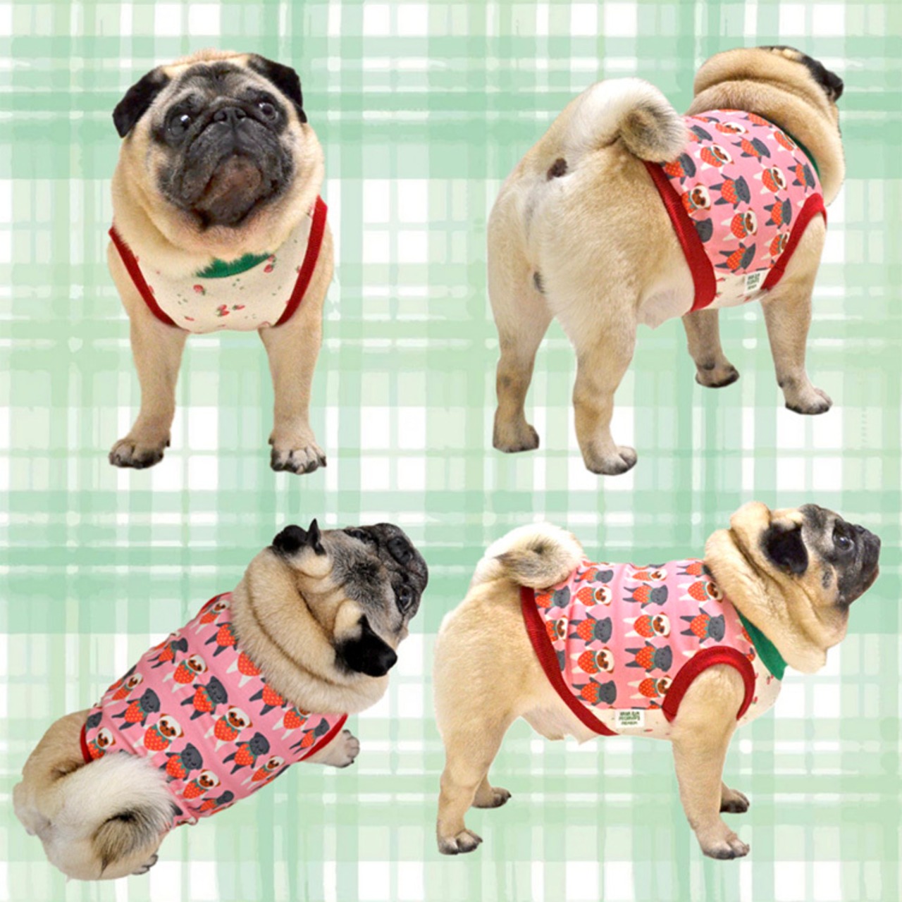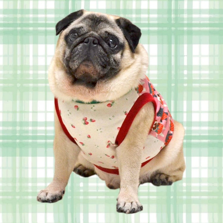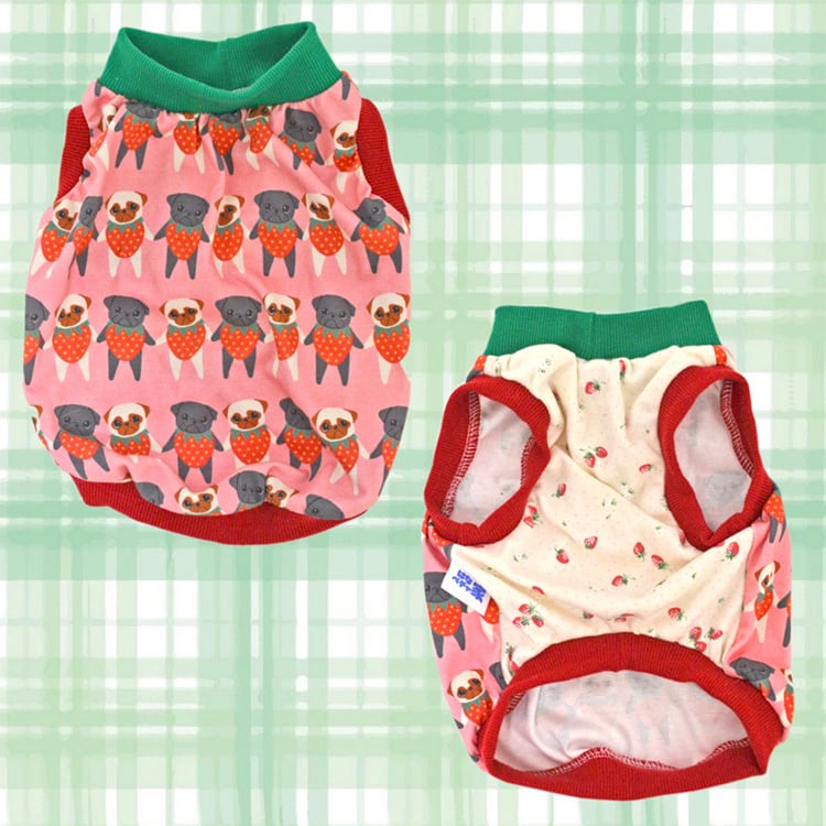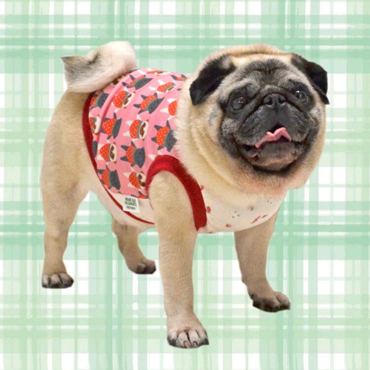 パグちゃんの体がいちごになったとっても可愛い生地を使用したタンクトップです。