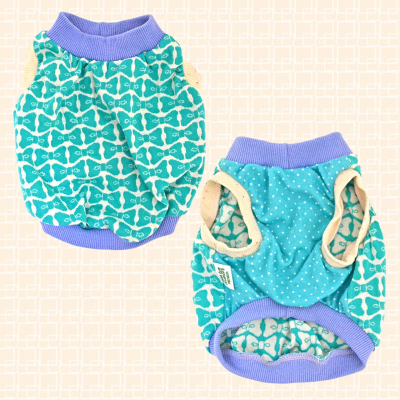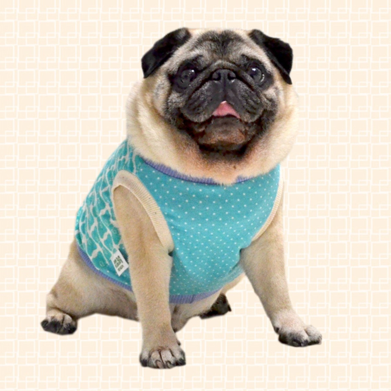 お腹部分も同系色のドット生地を使っているので、爽やかさ万歳のタンクトップになっています。