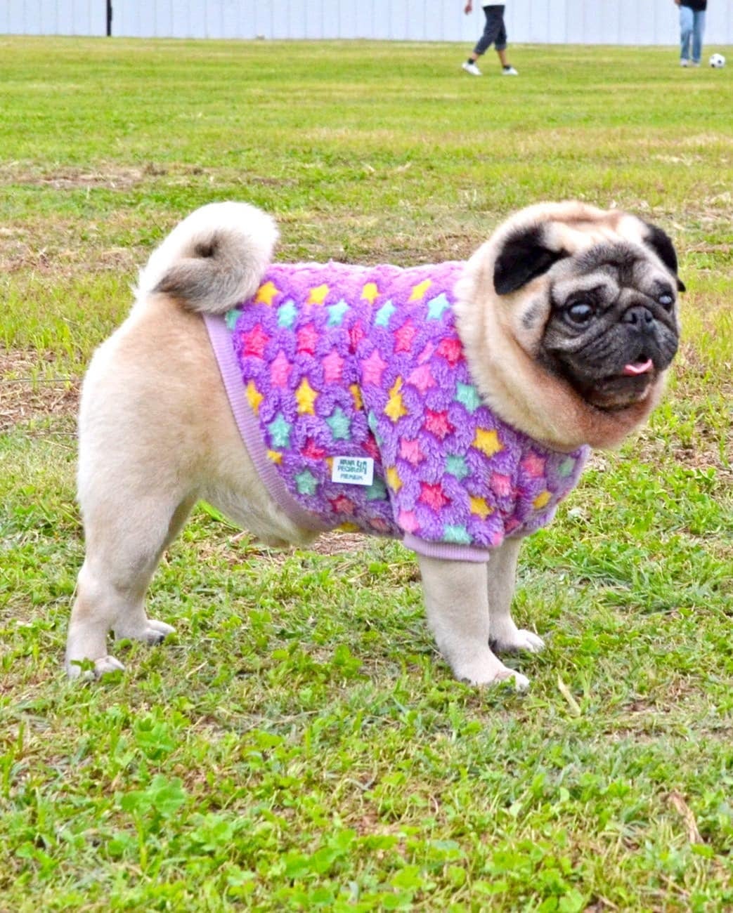 横方向に少し伸縮性もあるので家でゆったりする時やお散歩の時にも問題なく着用いただけます。
