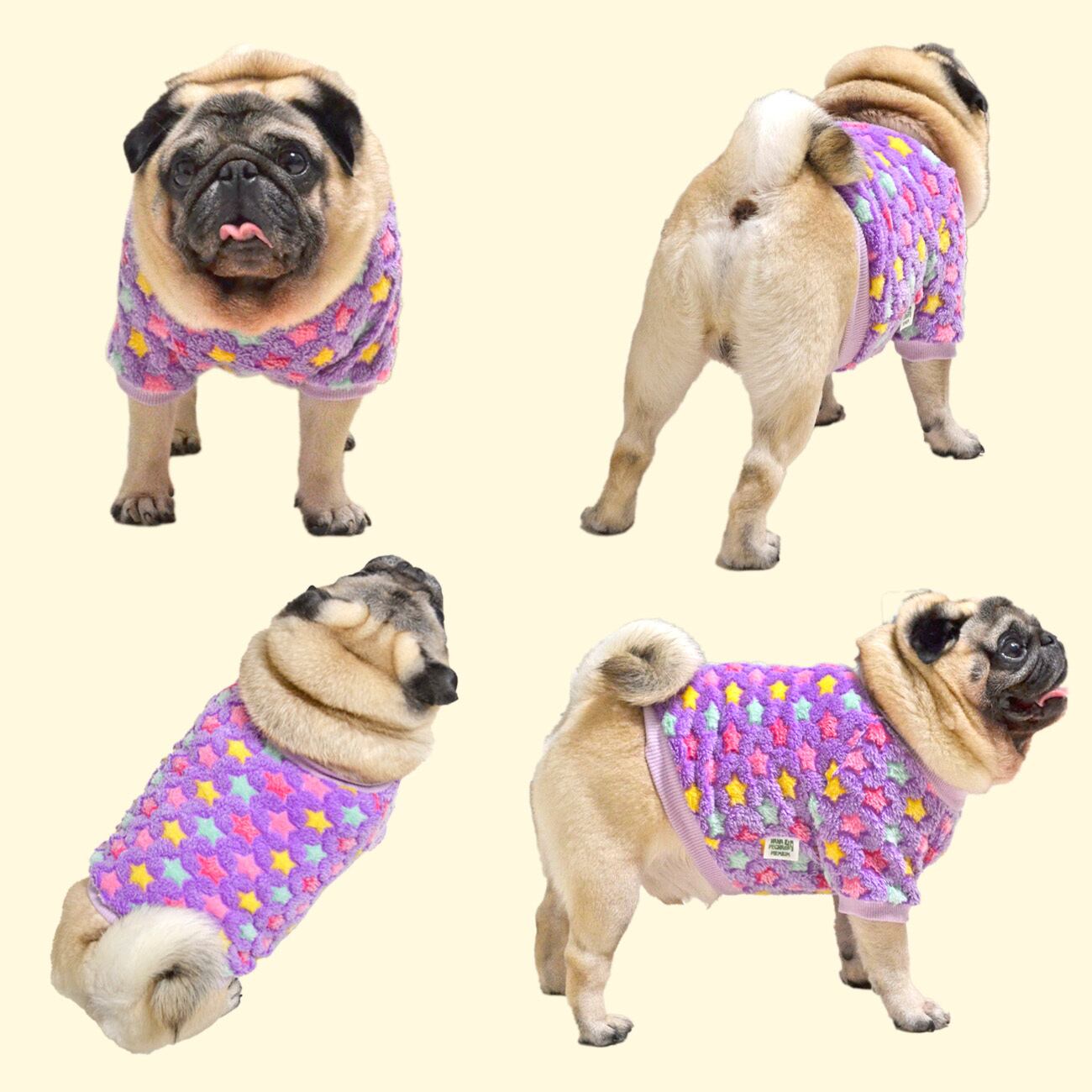 薄めのパープルにカラフルなお星様が散りばめられた派手かわTシャツは、