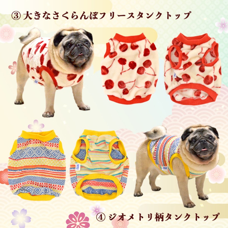 今年の福袋も福袋限定の選べるタンクトップをはじめ、これも定番の干支とパグのコラボぬいぐるみ、