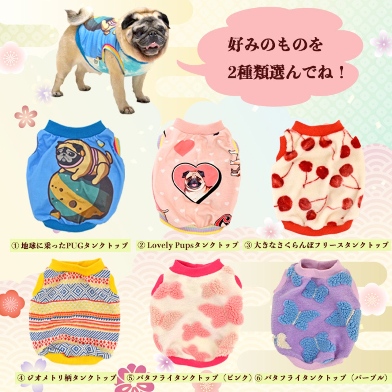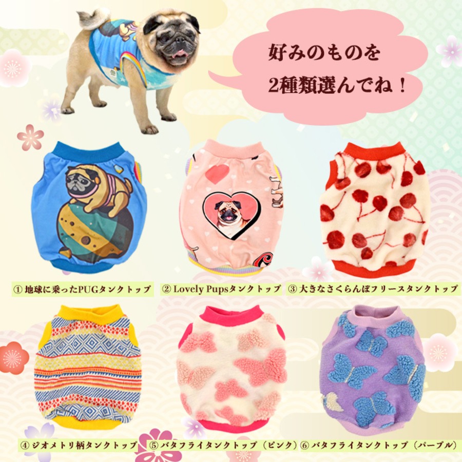 以下の6種類のタンクトップからお好みのものを2種類お選びください。