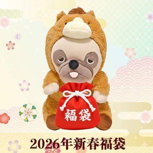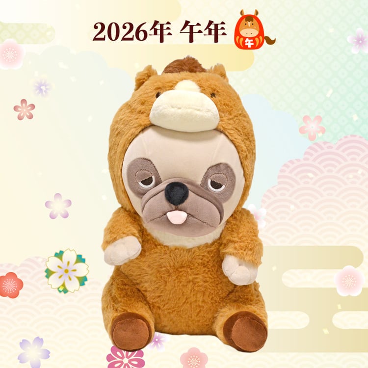 +毎年の定番となっている干支モチーフのパグぬいぐるみ。
