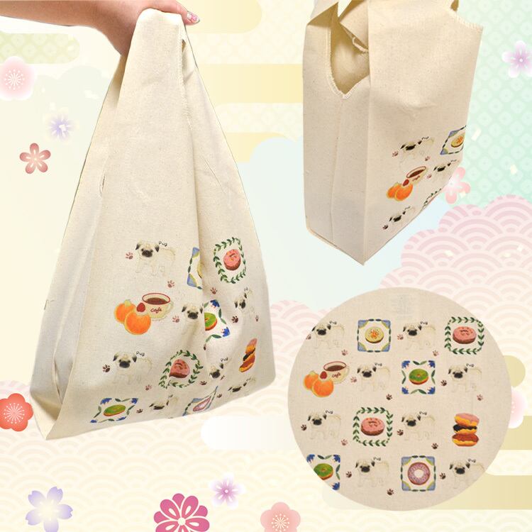 美味しそうなドーナツとパグちゃんがプリントされたエコバックです。