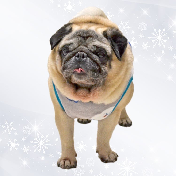 グレーのフリース生地に可愛いわんちゃんがプリントされた、シンプルなフリースタンクトップです。首、腕周りのリブは鮮やかな青を使っており、全体的にスッキリした印象になっています。