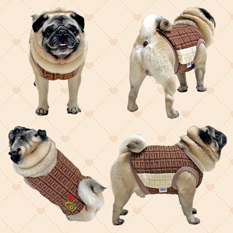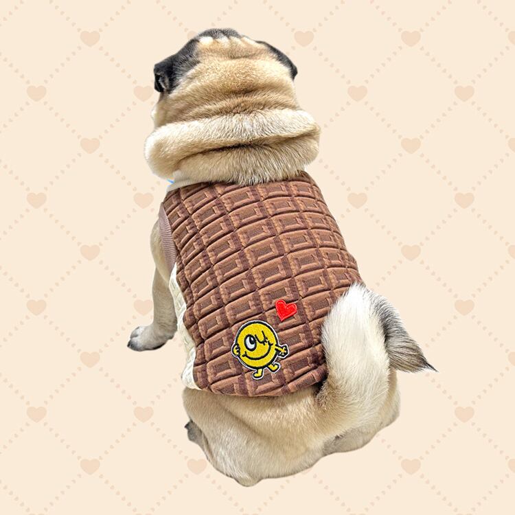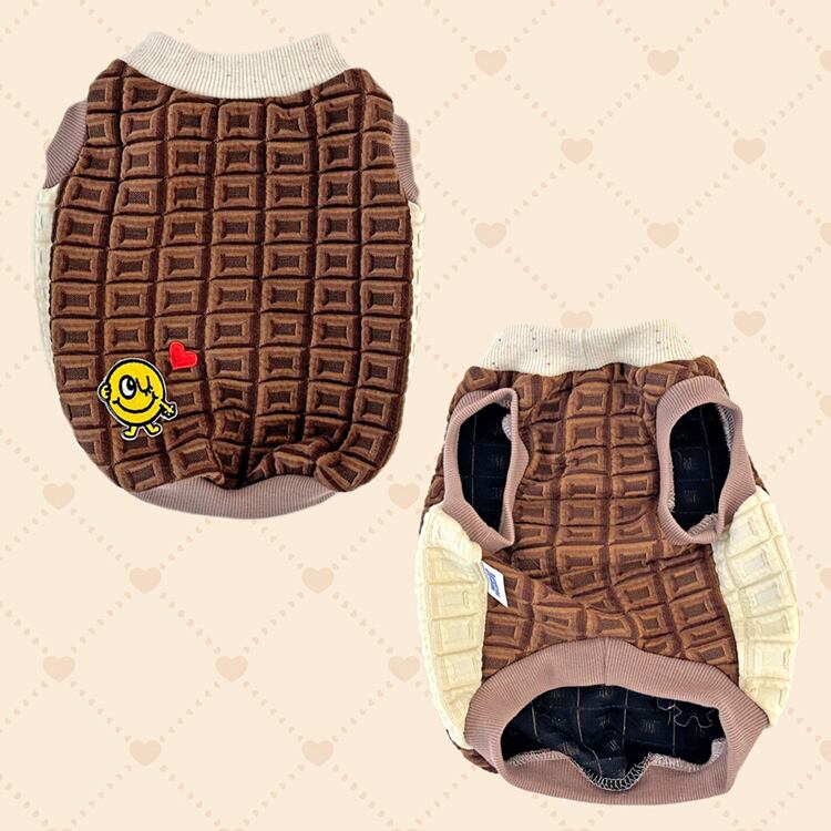 (二種類のチョコレート柄生地を使った切り替えがポイントです。)