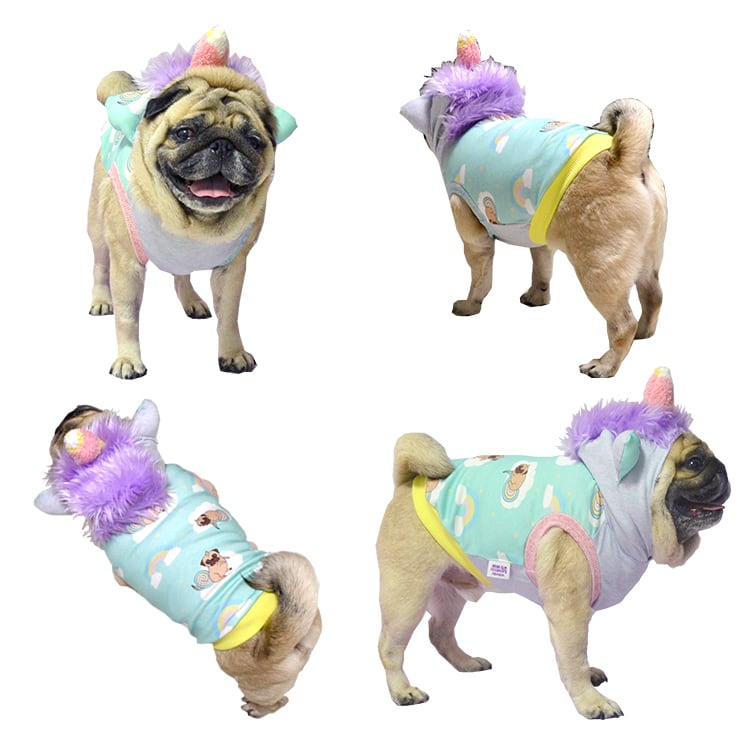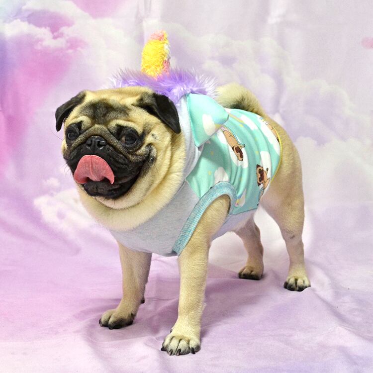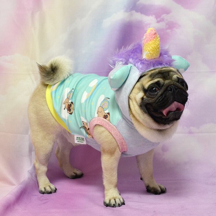 そこに普通のパグではなく、ユニコーンになったパグの生地を使用して、