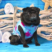 鮮やかな生地は、フォーンにも黒パグちゃんにも映えますね。