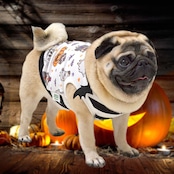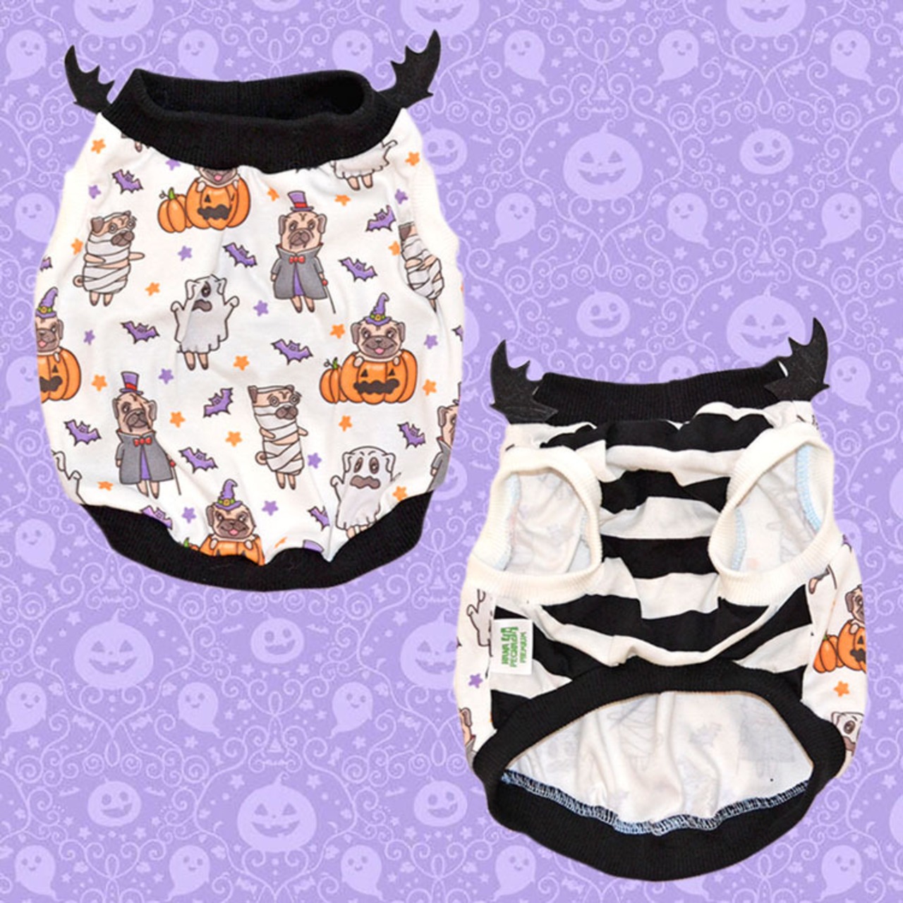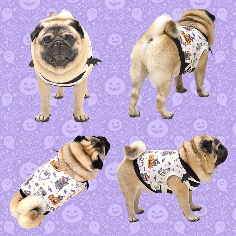 ハロウィン定番のカボチャやドラキュラ、マミー、お化けとパグちゃんがコラボしたような