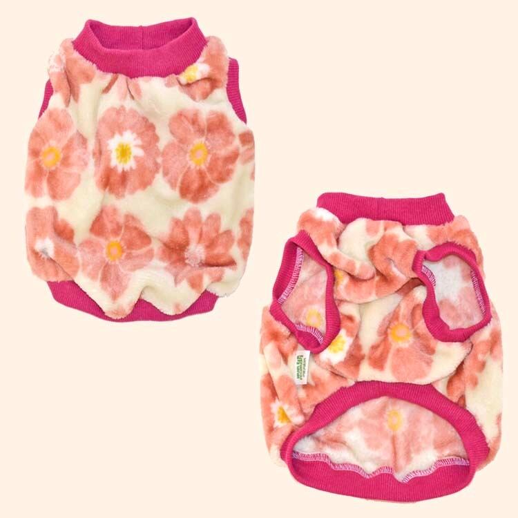 フラワーフリースタンクトップ(ホワイト×ピンク)